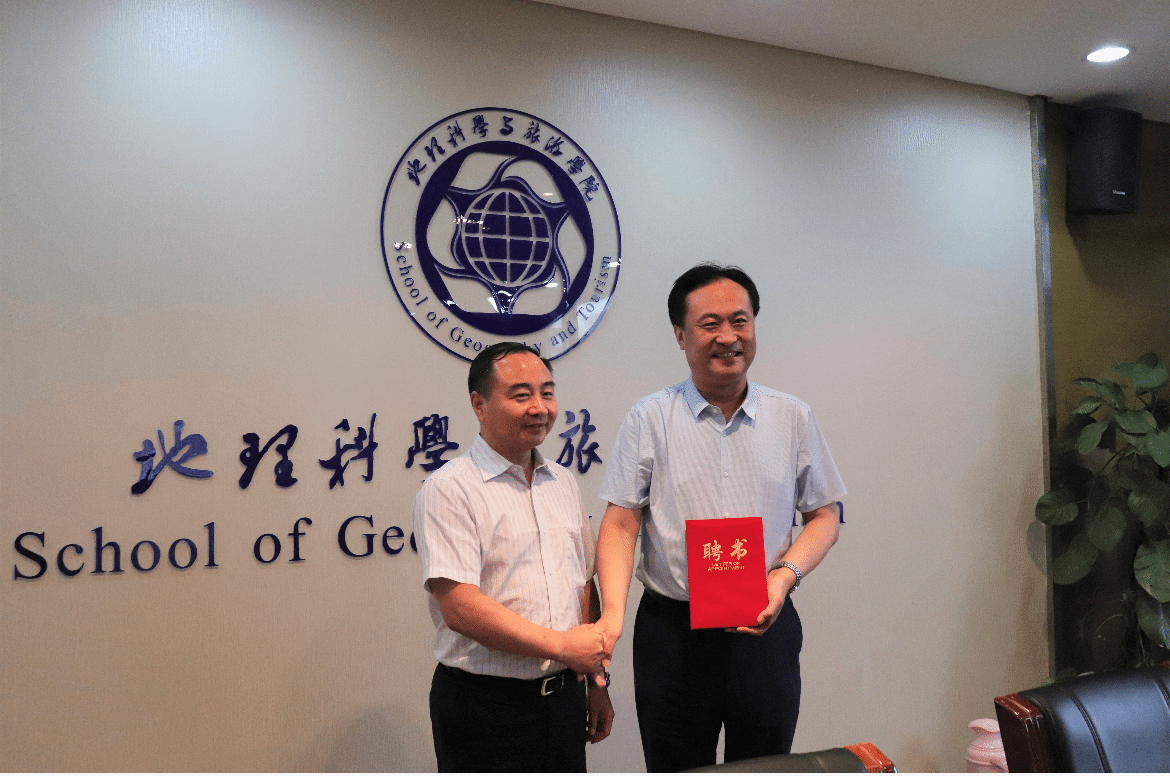 最后,王明道表示学院在现有条件下会进一步加大对地理学社发展支持的力度,并代表学院聘请刘彦随教授担任社团名誉指导教师。与会人员合影留念。