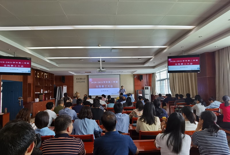 5月12日下午学院在格物楼一层报告厅召开全院教工大会,公司党政领导班子、全体教职工参加。会议由经理周正朝主持。