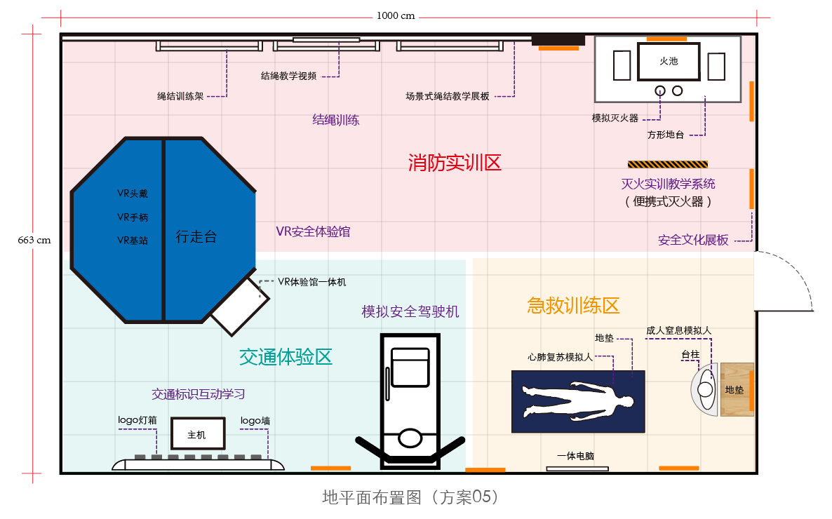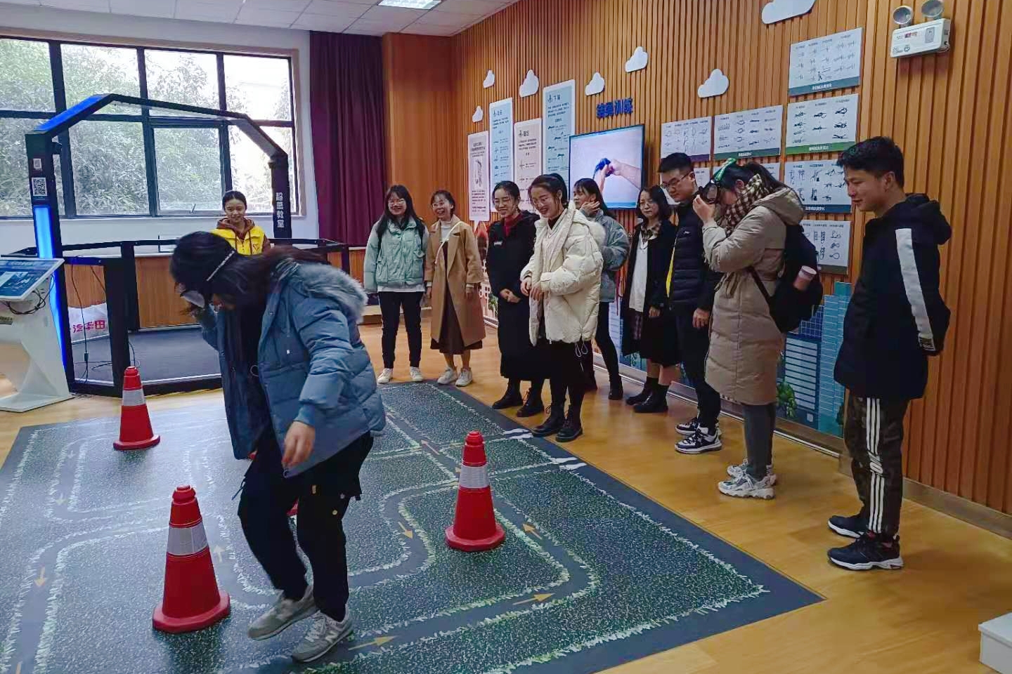 实训馆主要设施及项目包括醉酒行走体验项目、结绳训练、VR安全体验项目、交通标识互动学习项目、安全模拟驾驶项目、灭火实训教学系统和海姆立克训练七大板块。整个过程寓教于乐,通过完善的信息化基础设施和专业的教学设备,“场景式+情景式+体验式”的教育方式,使之成为避灾避险培训和体验的一站式场所,以期全面提升公司师生的安全意识和素养。