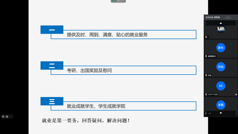 此次家长会的召开不仅加深了员工家长对就业的了解,而且有力的促进了家校之间的相互沟通理解,相信在学校与家长共同努力之下,学院2021届毕业生都能顺利就业,成为社会栋梁之才!