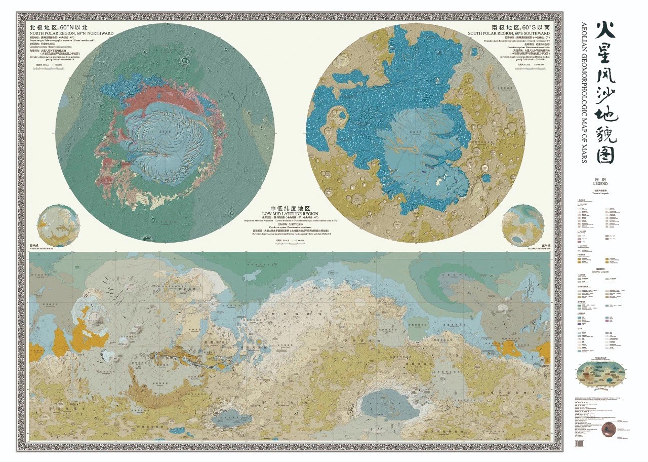 与此同时,由公司副董事长、行星风沙科学研究院经理董治宝教授团队主编的《火星风沙地貌图》正式出版发行,这是国内首幅以展示火星风沙地貌为主要内容的专题地图。