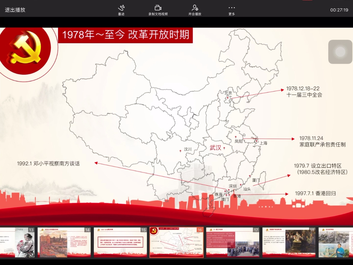 支部委员张家玮、刘旭丽制作了党史地图,员工党员们通过“竞答”方式回顾建党以来的大事件。支部副书记伍子轩带领大家一起重温中共一大、红军长征、改革开放等党的重要历史事件,回望艰苦岁月,牢记党“为人民服务”的宗旨。