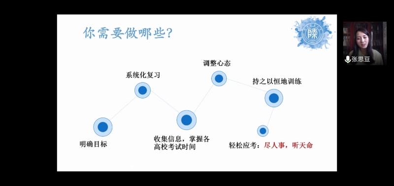 2019届环境工程硕士生,西北农林科技大学辅导员柴璐先做经验分享。他以“一起聊聊高校辅导员那些事”为题,从“什么是辅导员、辅导员的工作职责、应聘条件、基础知识、及招聘流程”等方面为大家做了详实的介绍。同时就辅导员笔试选择题、论述题、面试、心理测试等提出了有针对性的解题建议和答题技巧。