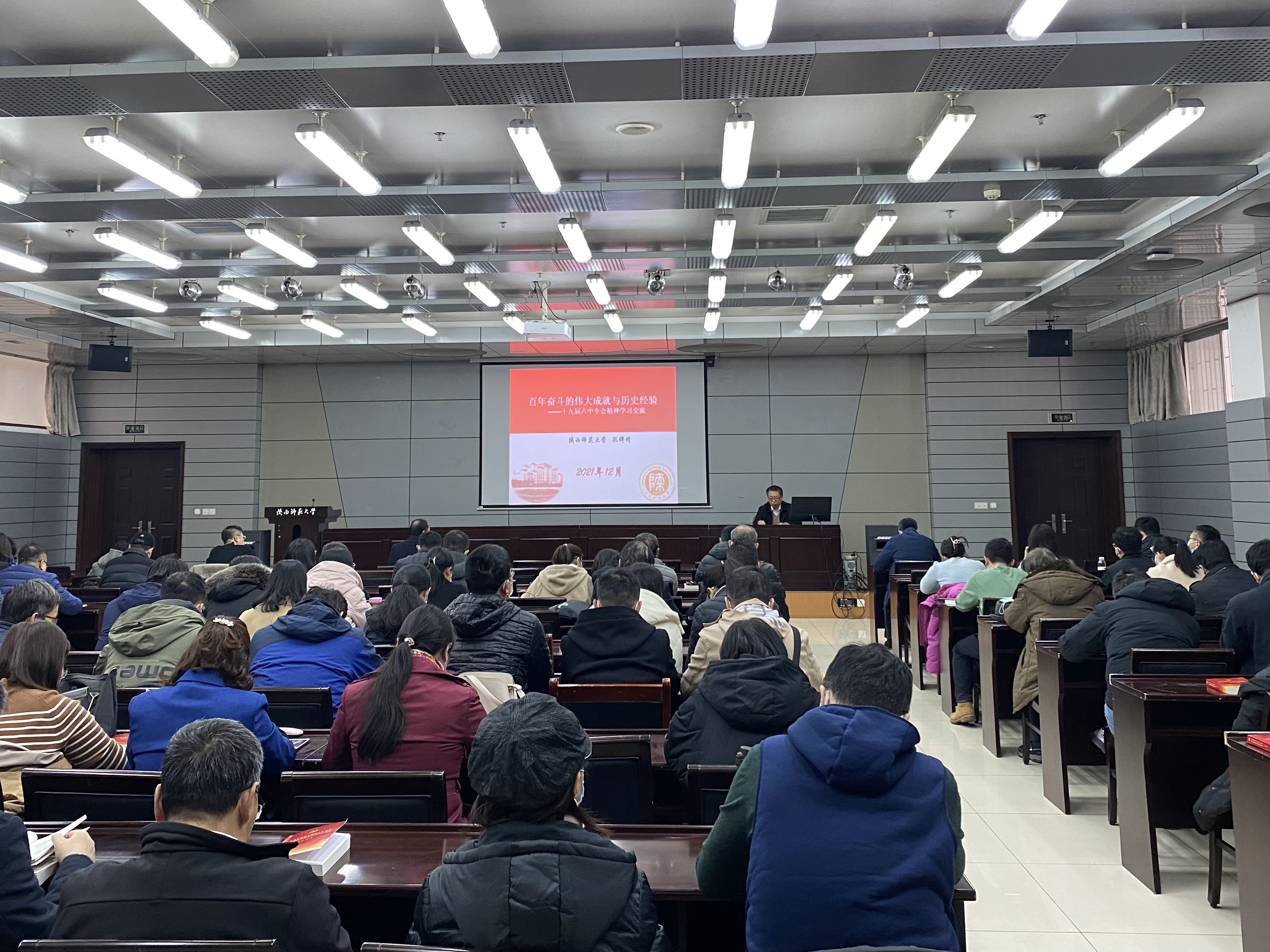 为深入开展党史学习教育,深入学习贯彻党的十九届六中全会精神,引领广大党员和教职工深学笃行,把思想和行动统一到全会精神上来,推动全院兴起学习宣传贯彻党的十九届六中全会精神的新热潮,12月8日下午,学院召开党的十九届六中全会精神专题学习会,邀请学校十九届六中全会精神宣讲团成员孔祥利教授解读全会精神。学院全体教职工参加了学习,会议由公司党委书记王明道主持。