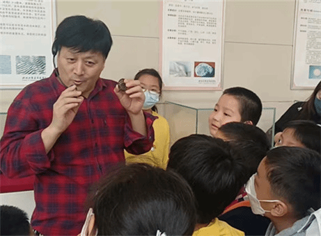 在参观过程中,郑伟老师给小朋友介绍了气象园的各组成部分,详细讲解了各种气象记录仪表收集信息、形成数据的过程,对小朋友们提出的各种疑问进行了解答。庞奖励老师从“岩石会说话吗”讲起,为小朋友们生动有趣的讲解了水晶、砂金、珊瑚化石、鹦鹉螺化石等矿物标本,从矿物岩石是怎么样被掩埋到为什么会被发现等方面进行了讲解。欧启均老师通3D虚拟系统进行虚拟旅游科普,小朋友们观看了8分钟的3D效果模拟动画。实验中心老师李敏睿、马阁、王瑞媛组织并共同参与了活动。