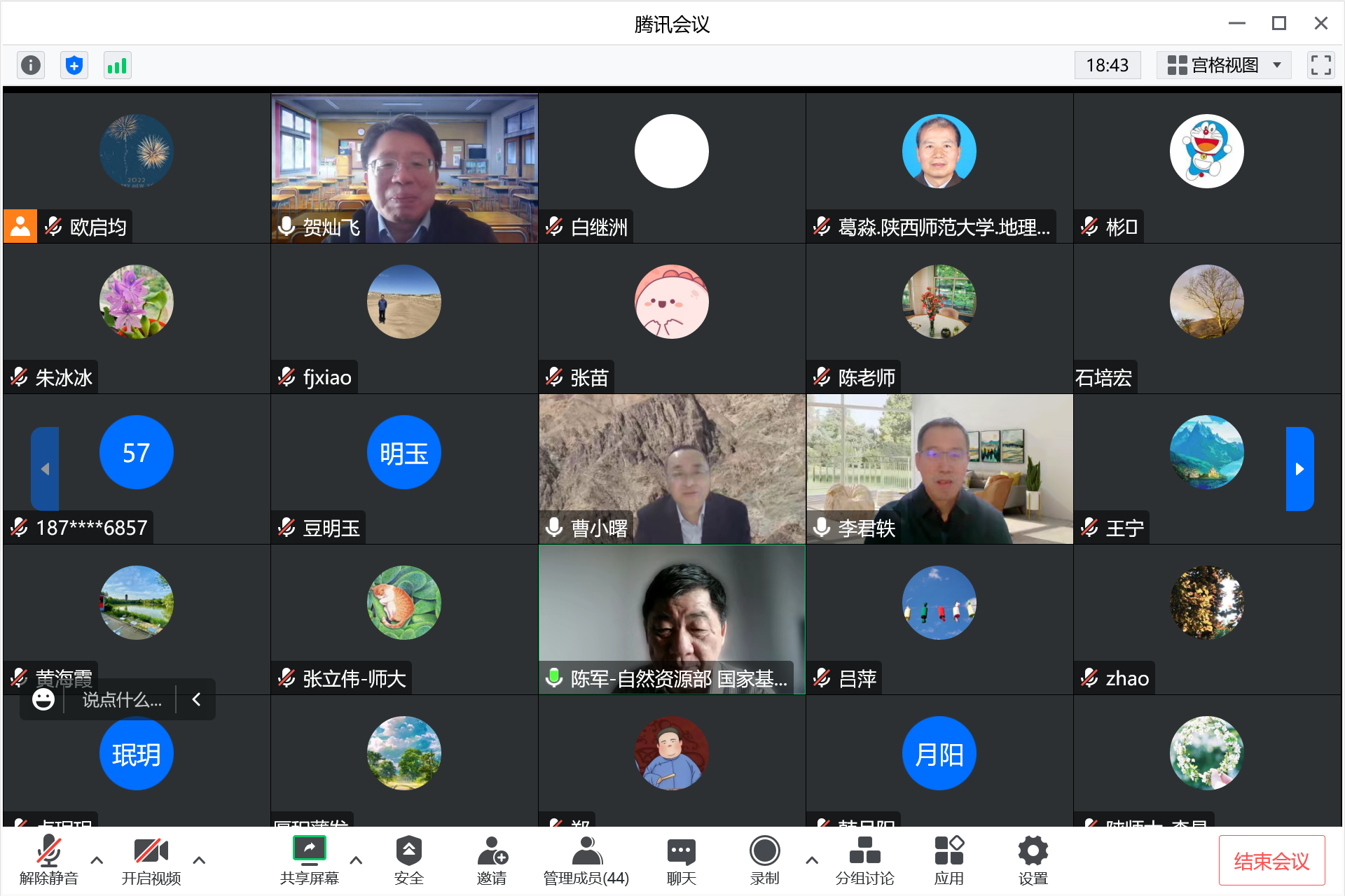 论坛首先由副董事长董治宝教授致辞,报告分别由李君轶教授和曹小曙教授主持,中国科学院院士、中国科学院生态环境研究中心、公司杰出员工傅伯杰研究员;中国工程院院士,中国科学院兰州分院分党组书记、经理、中国科学院西北生态环境资源研究院经理、公司杰出员工冯起研究员;中国科学院院士、长安大学彭建兵教授;中国工程院院士、自然资源部国家基础地理信息中心陈军教授;国家杰出青年基金获得者、北京大学贺灿飞教授;北京师范大学宋长青教授;广州大学地理科学学院朱竑教授;国家自然科学基金委地球科学部熊巨华研究员等8位专家分别围绕面向可持续发展的地理学、国家公园建设的理论与实践、生态秦岭研究构想、实景三维中国建设的方向与任务、 新时期中国区域发展研究、复杂地理系统认识、西方再野化研究启示与中国实践、地理科学的基金申请资助简介等主题,做了精彩纷呈的学术报告。论坛线上线下交流活跃,学术气氛浓厚。