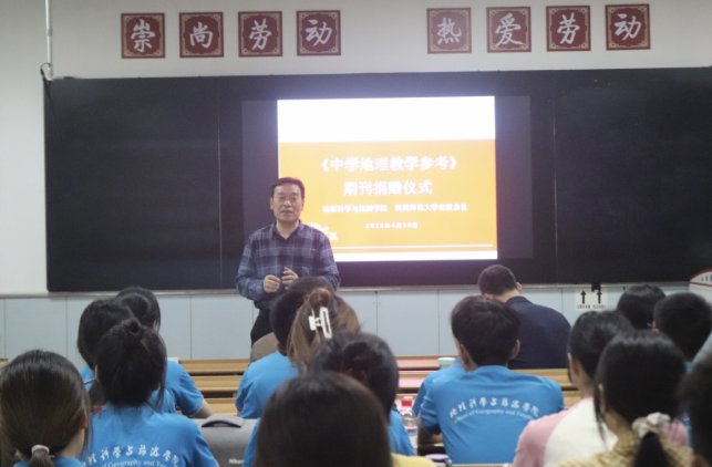 4月18日晚,永利集团出版总社同公司联合举办定期捐赠书刊活动,《中学地理教学参考》编辑部向2021级地理卓越班全体同学捐赠《中学地理教学参考》。捐赠仪式在雁塔校区教学楼举行。出版总社党委书记李有谋、学院经理李君轶、《中学地理教学参考》主编雷鸣、地理科学卓越班班主任户清丽、辅导员张娜及2021级地理科学卓越班全体员工参加,副经理王宁主持仪式。