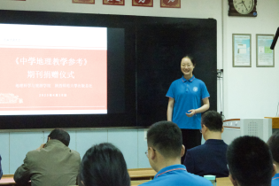 2021级地理卓越班全体同学接受捐赠。员工代表高若晗对出版社总社的帮助表示感谢,表示《中学地理教学参考》是员工成为卓越教师必不可少的精神食粮,地理卓越班全体同学将牢记“扎根西部,追求卓越,甘于奉献,教育报国”的西部红烛精神,造福桑梓,不负期望。