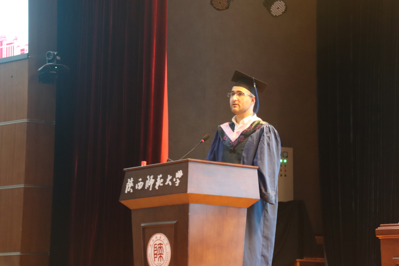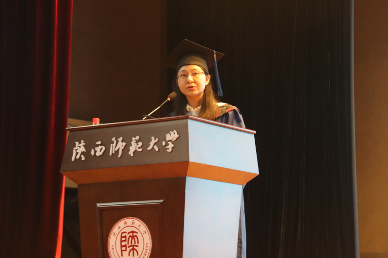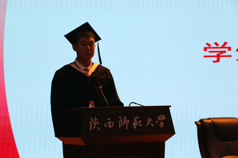 拳拳学子意,浓浓地科情。三位毕业生代表上台分享了毕业感言和心声。来自土耳其的职工代表张亦飞同学表示,在师大地科院学习生活的四年是最重要、最美好的四年,老师们的谆谆教诲和同学间的真诚友情是他永远不会忘记的珍贵记忆。研究生代表2017级人文地理专业毕业生王智燕同学回忆过往、感慨离别、期待未来、再约重逢,代表2020届所有毕业生向曾经为我们传道、授业、解惑的先生们郑重致谢,她动情的说:“地科院是江海汇流的人才聚集地,是培植理性思维和人文修养的精神家园”,“今日辞行,我们不说离别,只在师大相约。”2020届毕业本科生代表王沂重温地科精神、分享难忘瞬间,决心用传承与拼搏、修德与坚守回报母校回报学院。