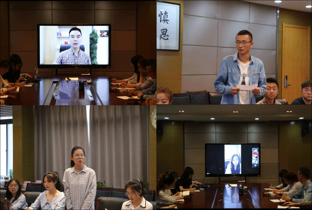 员工党员王新蓓根据疫情期间医患关系的转变与周医生进行交流探讨;哈延庆同学就恪守岗位的信念来源向卢君进行提问;杨超同学以习近平总书记来陕考察提出的“六稳”、“六保”为切入点,围绕学校为复工复学开创的线上打卡、日检日报、错峰就餐等工作进行讨论交流。