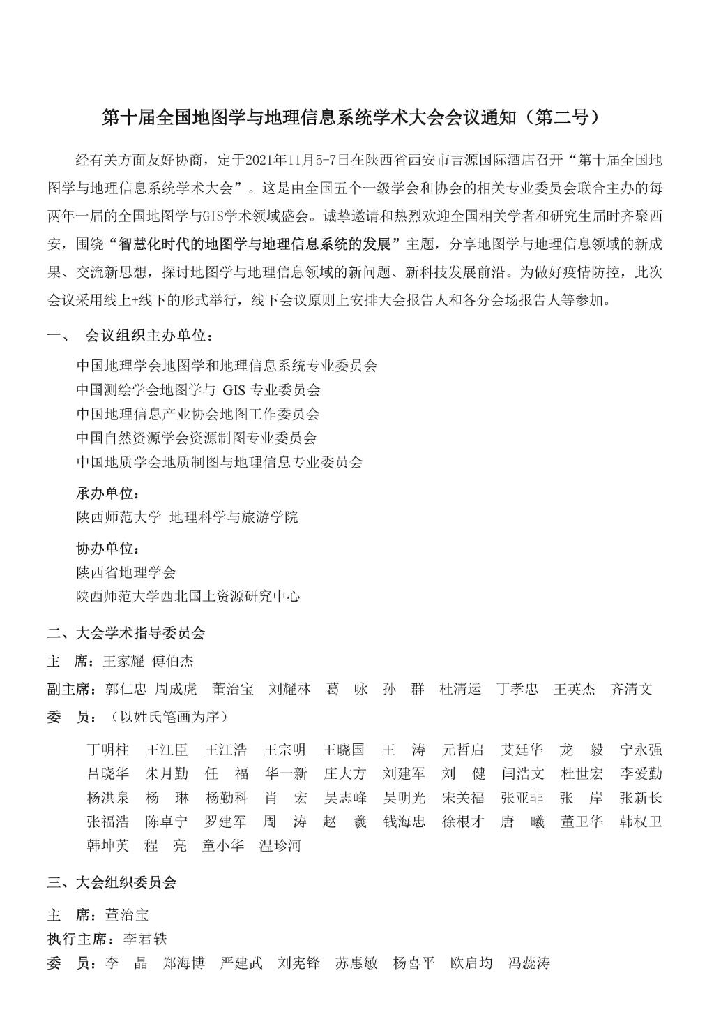 第十届全国地图学与地理信息系统学术大会会议通知(第二号)