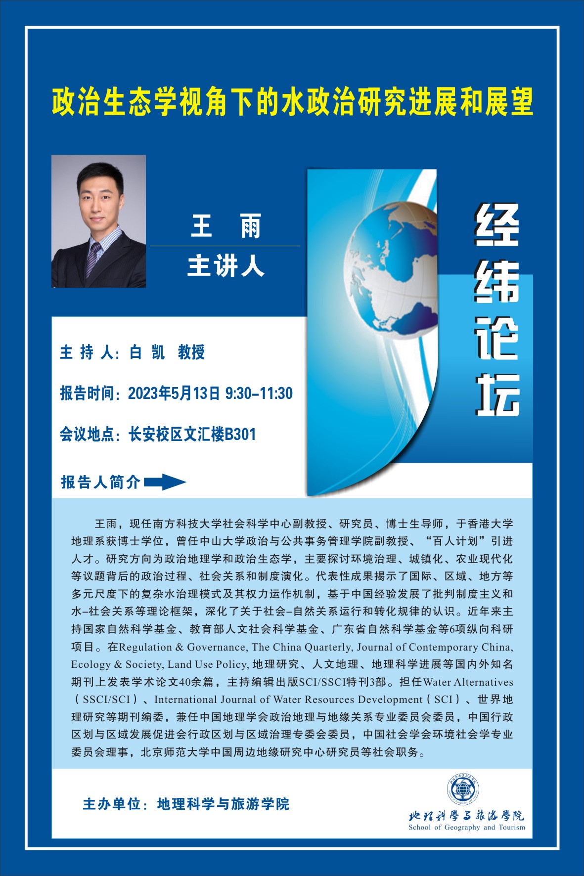 经纬论坛--政治生态学视角下的水政治研究进展和展望